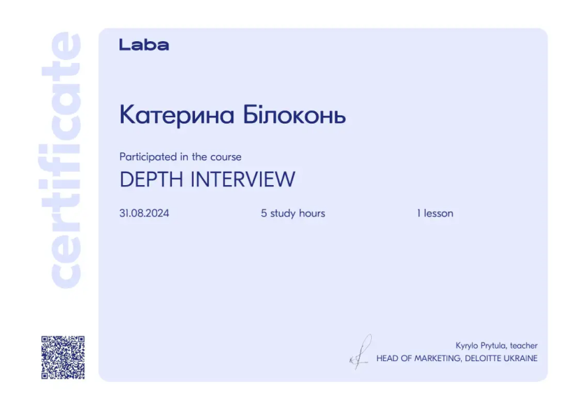 – Маркетолог проєкту, який допоможе визначити поточну мету, обрати методологію, зробить аналіз аудиторії, сформує план дослідження та спроєктує питання для глибинних інтерв’ю.